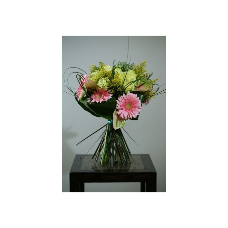 Ramo funerario en tonos rosas y verdes. Despide a tu ser querido con un detalle elegante y sencillo. El ramo es personalizable, puede consultarnos sin compromiso sobre las diferentes variantes de colores.