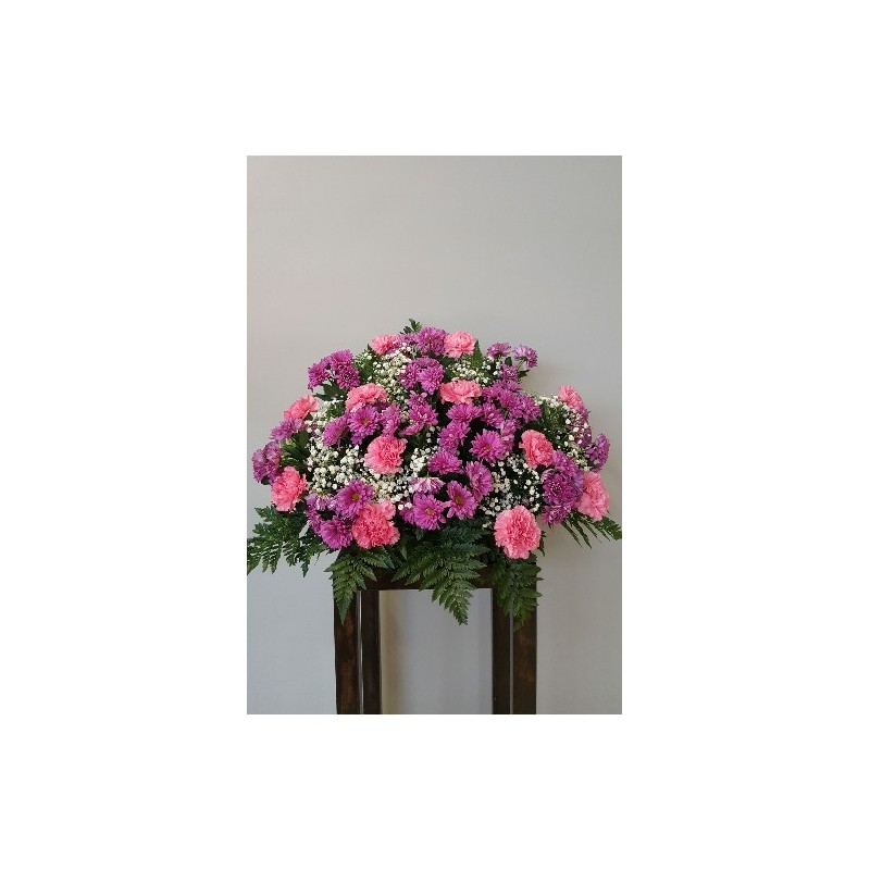 Centro de crisantemos y claveles, con paniculata. Sencillo y elegante. Consulte colores