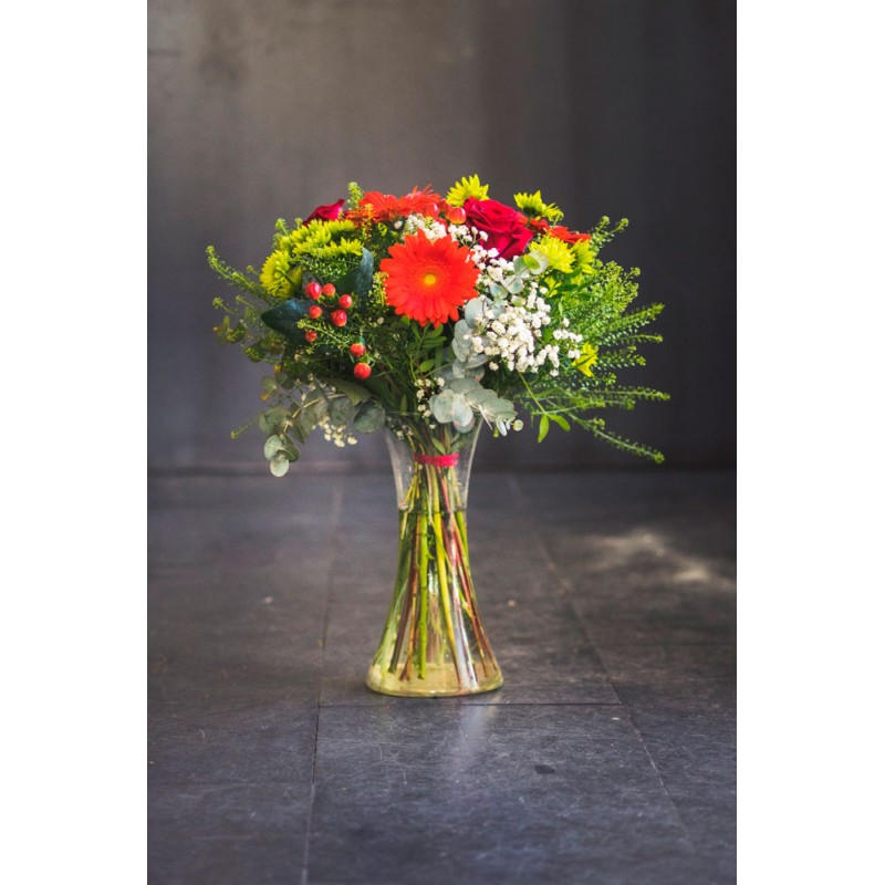 Gerberas, margaritas, rosas, paniculata, hipericum.