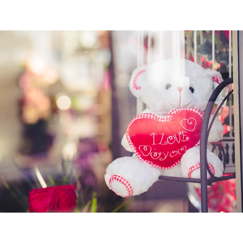 Oso de peluche color blanco con corazón rojo "I Love you".