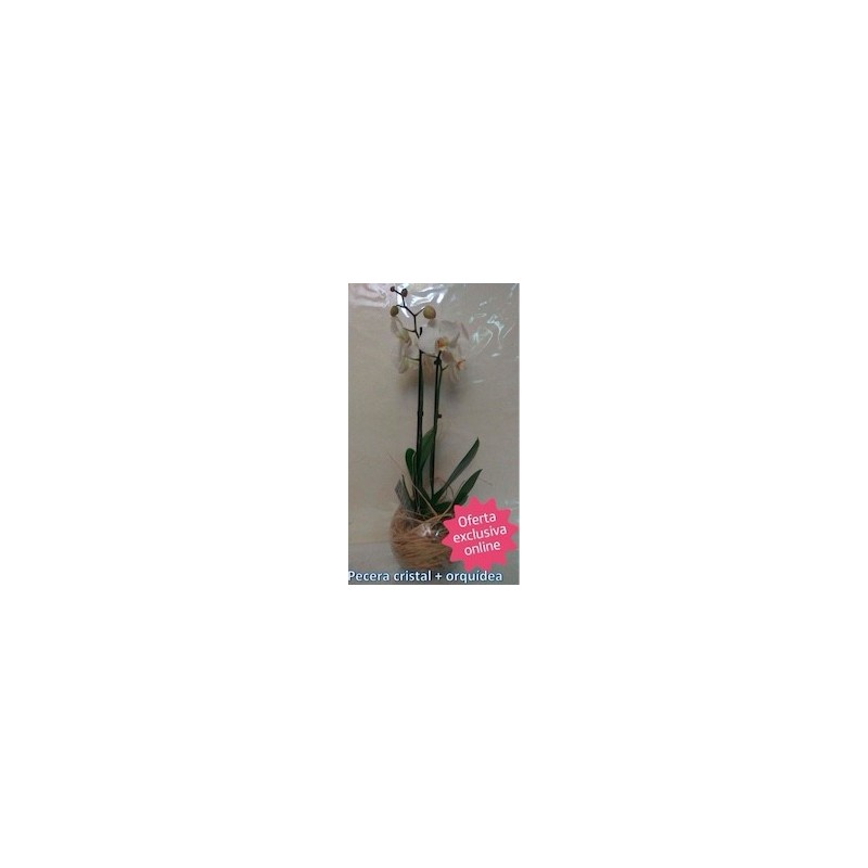 Orquídea natural acompañada de una pecera de cristal. Ser cliente de Decoflor Toledo tiene sus ventajas. Ahora por la compra de tu orquídea te regalamos una pecera de cristal totalmente gratuita.