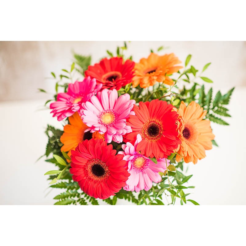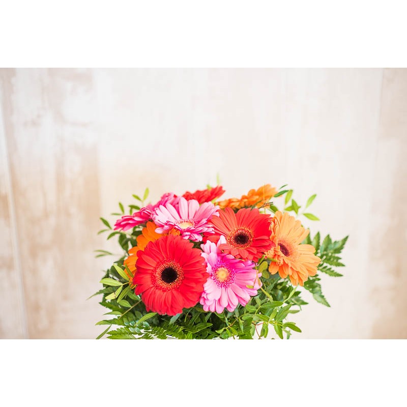 Bouquet de gerberas variadas naturales en diferentes tonalidades.